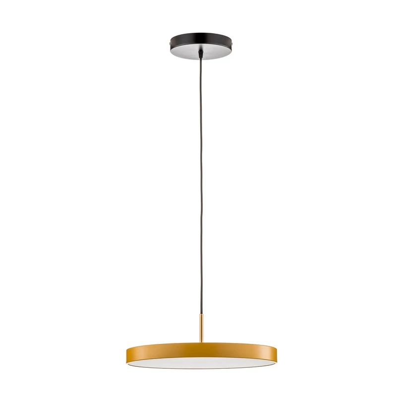 Die UMAGE Asteria medium Hängelampe vereint minimalistisches skandinavisches Design mit funktionaler Eleganz. Gefertigt aus hochwertigen Materialien wie Stahl, Aluminium, Kunststoff und Textil, überzeugt sie durch ihre klare Formensprache und die harmonische Farbgebung in Safrangelb. Die integrierte LED-Lichtquelle sorgt für ein warmweißes Licht mit 3.000 K, das eine angenehme Atmosphäre schafft – ideal für Wohn-, Ess- oder Küchenbereiche.