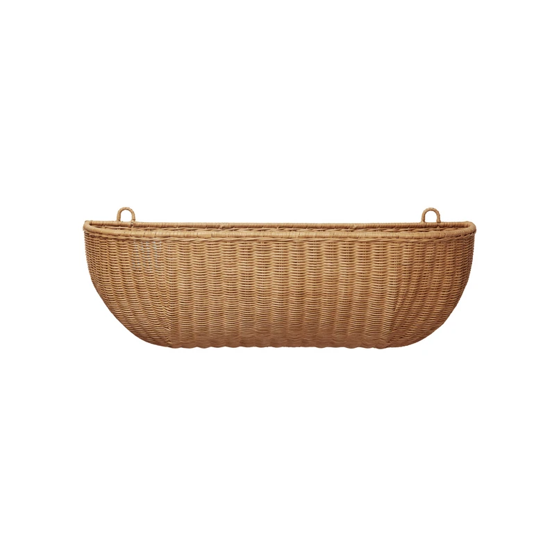 Der Braided Wandkorb wird handgefertigt aus natürlichem Rattan und durch eine stabile Eisenstruktur zusätzlich verstärkt, wodurch er Robustheit und Formbeständigkeit erhält. Die geschwungene, an ein Kanu erinnernde Form setzt organische Akzente, während die integrierten Schlaufen eine unkomplizierte Montage an der Wand ermöglichen. Perfekt geeignet zur Aufbewahrung von Spielzeug oder Accessoires, bringt der Korb in Flur, Wohn- oder Kinderzimmer natürlichen Charme und Struktur.