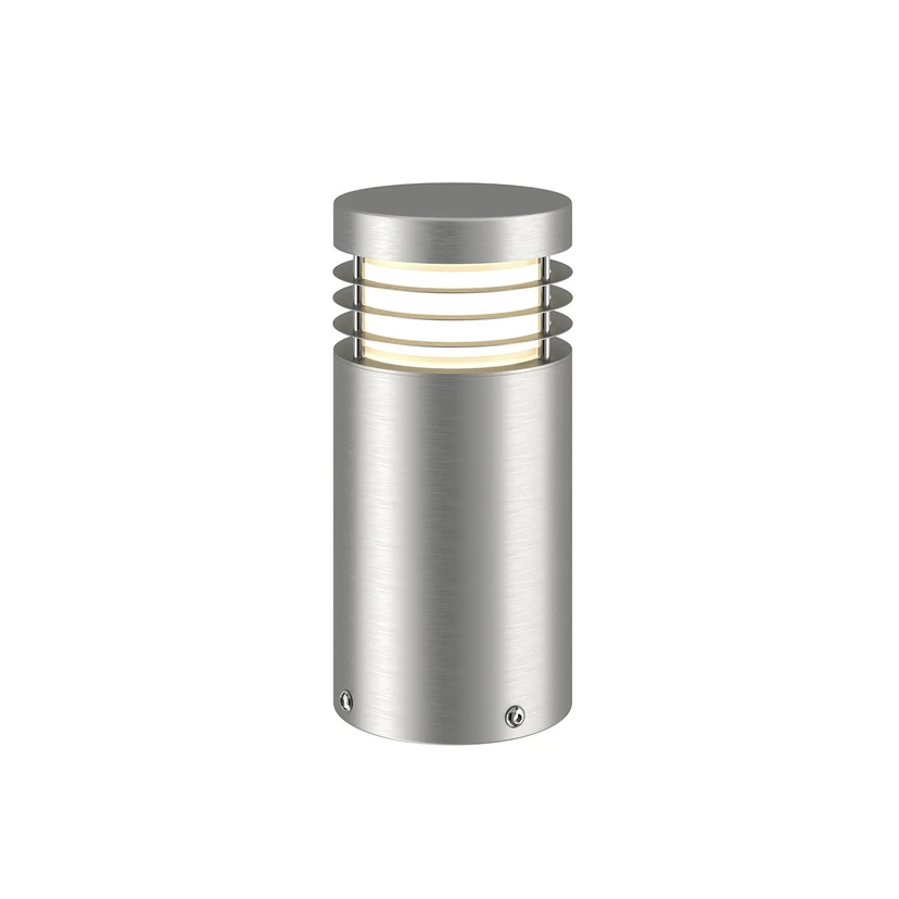 Die Caramia Outdoor Garden Light Steel wird zu einem leuchtenden Highlight auf dem Grundstück, wenn es um eine gute Außenbeleuchtung für die Orientierung in den Abendstunden geht. Die Leuchte hat ein zeitloses Erscheinungsbild mit einem klassischen zylindrischen Edelstahlkörper, der seine natürliche Oberfläche beibehalten hat. Sie lässt sich daher problemlos in die bestehende Umgebung integrieren und fügt sich dort als fester Bestandteil der Umgebung ein.