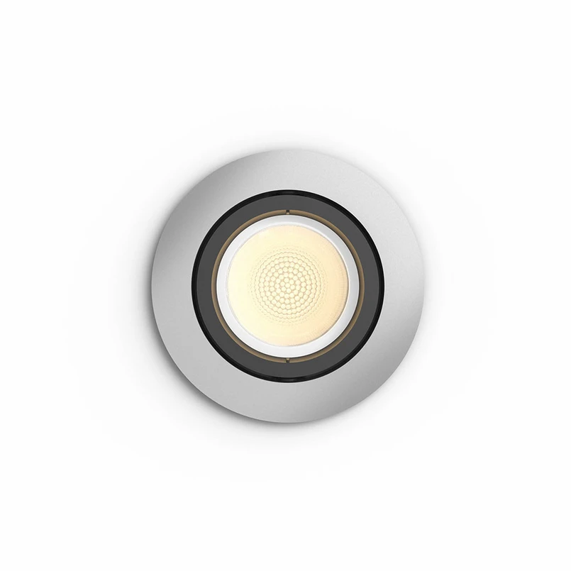 Cantura Recessed Alu Round Bluetooth ist ein diskreter Einbauspot, der alle Vorteile eines intelligenten Beleuchtungssystems bietet; Philips Hue. Über die Hue-App auf Ihrem Smartphone oder Tablet können Sie das Licht dimmen, ein oder ausschalten und die Farbe der Beleuchtung ändern. Die Lampe kann sowohl als Primärlicht als auch eine Umgebungsbeleuchtung im Raum darstellen.