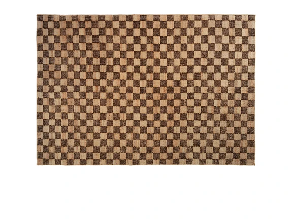Der Wollteppich Check Wool Jute Rug 140x200 Coffee/Natural ist ein dekoratives und praktisches Einrichtungselement, das sowohl dem Auge als auch den Füßen schmeichelt. Der Teppich besteht aus einer Mischung aus 40% Jute, 40% Wolle und 20% Baumwollgarn. Die natürlichen Materialien sorgen für ein strapazierfähiges Design und verhindern im Gegensatz zu synthetischen Materialien die Freisetzung von Mikroplastik und sorgen so für ein gesundes Innenraumklima. Der Teppich hat ein starkes und dichtes Gewebe, das den Strapazen des Alltags standhält und sich daher problemlos in mehrere Räume des Hauses integrieren lässt. Jeder Teppich wird von Hand gewebt. Daher gibt es bei jedem Stück individuelle Unterschiede. Dies trägt dazu bei, dass jeder Teppich seinen ganz persönlichen Charme erhält. Das natürliche Garn sorgt für eine weiche und warme Oberfläche, die das Betreten des Teppichs angenehm macht. Die modernen, neutralen Farben und das Schachbrettmuster lassen sich leicht mit verschiedenen Einrichtungsstilen kombinieren.