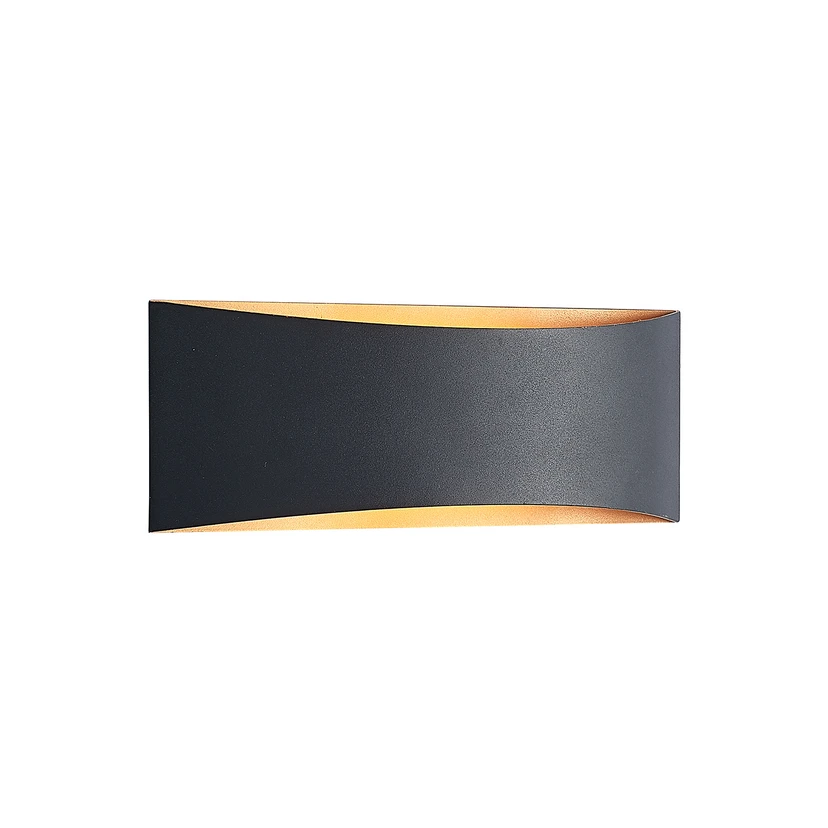 Die Danta Wandleuchte Schwarz/Gold wirkt durch ihre schlichte Form und die schöne Farbgebung als eine sehr attraktive Lichtquelle. Das schlichte Design eignet sich sowohl für den privaten Wohnbereich als auch für den gewerblichen Bereich. Wenn Sie also auf der Suche nach einer gemütlichen Akzentleuchte für ein stimmungsvolles Ambiente in Ihrem Café oder Hotel sind, ist dieses Modell genau das Richtige. Die halbrunde Leuchte hat an jedem Ende einen Lichtaustritt. Die Öffnungen sind leicht in den Raum geneigt, so dass das dahinter liegende LED-Modul zusätzliches Licht in die Umgebung abstrahlen kann. Durch die strategische Platzierung der Lichtquelle wird das Licht nicht geblendet, sondern in einem harmonischen zweiteiligen Lichtschein sanft an der Wand auf und ab geworfen. Die goldene Innenseite der Leuchte reflektiert das Licht und verleiht ihm einen tiefen, warmen und einladenden Schein, der eine schöne Ergänzung zur mattschwarzen Außenseite bildet.