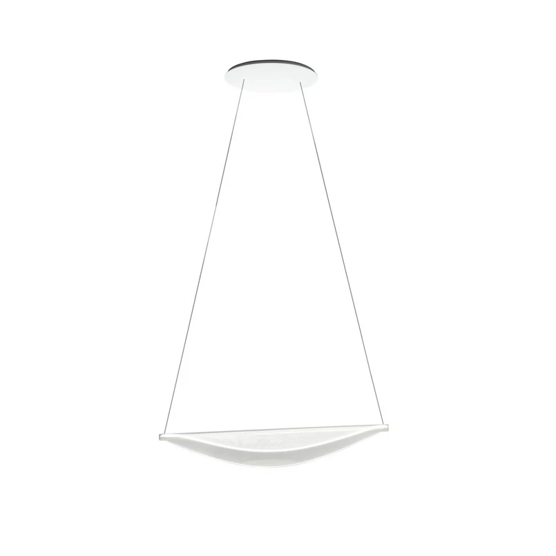 Der Baldachin aus weiß lackiertem Aluminium unterstreicht das minimalistische Design und sorgt für eine harmonische Gesamtoptik. Im Inneren arbeitet ein topLED-Modul, das warmweißes Licht mit einer hervorragenden Farbdarstellung (CRI > 90) erzeugt. Über eine Phasenan- oder -abschnittsteuerung kann die Lichtintensität flexibel angepasst werden – ideal, um unterschiedliche Atmosphären im Raum zu schaffen.