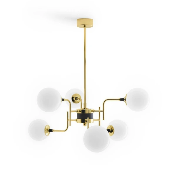 Die Galassia Hängelampe mit sechs Flammen überzeugt durch ein harmonisches Zusammenspiel aus Design und Funktion. Ihr Gehäuse aus Messing und die Glasschirme in Weiß bilden eine elegante Einheit, die in Kombination mit dem goldfarbenen Finish für einen stilvollen Blickfang sorgt. Ideal geeignet für Wohn- und Esszimmer, erzeugt sie mit ihrer Lichtfarbe von 2.700 Kelvin ein angenehm warmes Licht, das eine wohnliche Stimmung unterstreicht.