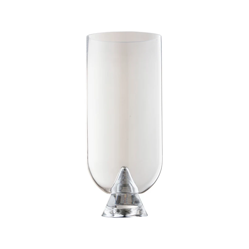 Glacies ist, wie der Name schon sagt, vom Eisberg und dem Gletscher inspiriert, der durch das Wasser schwimmt und fließt. Am Boden der Vase ist der gefrorene Klumpen zu sehen, der über die Oberfläche hinausragt, und die Silhouette wird zu einer kleinen Form, die einem Blumenarrangement zu einem guten Stand verhelfen kann.