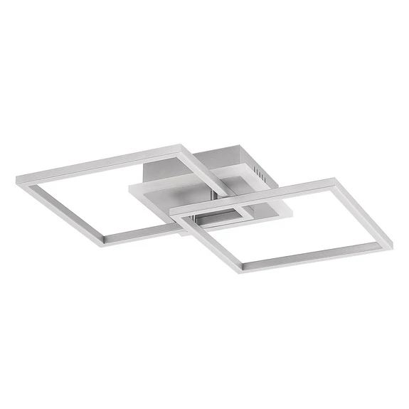 Eine moderne Optik und sehr viel Flexibilität in der Lichtgestaltung - das sind die besonderen Merkmale, die die LED-Deckenleuchte Fjardo auszeichnen. Die Leuchte setzt sich aus zwei quadratischen Rahmen zusammen, die versetzt am ebenfalls quadratischen Baldachin befestigt wurden und sich leicht überlappen. Diese sind rundum mit LEDs hinter einer satinierten Polycarbonat-Abdeckung bestückt und auch der Baldachin wurde mit einem leuchtenden Rahmen aus LEDs bestückt. Im Lieferumfang der Leuchte ist eine Fernbedienung enthalten, mit der das Licht sehr flexibel eingestellt werden kann. Neben der CCT-Funktion, die eine Einstellung der Lichtfarbe (warmweiß 3.000 K, universalweiß 4.000 K oder tageslicht 6.500 K) passend zu jeder Situation oder Aktivität ermöglicht, lässt sich die Helligkeit auch dimmen. Diese Flexibilität macht die moderne Leuchte zu einem absoluten Allrounder für jeden Raum und jede Beleuchtungsaufgabe.