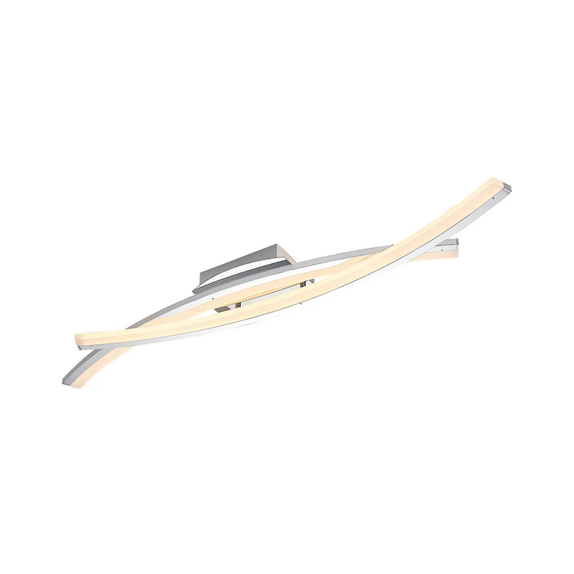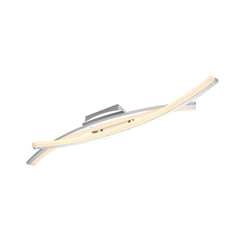 Elarit ist ohne Zweifel ein Lichtspender im modernen Look, der vor allem zu zeitgemäß eingerichteten Wohnräumen besonders gut passt. Es kreuzen sich hier zwei leuchtende Bögen, wobei die Metalloberfläche ganz in glänzendem Chrom gehalten ist und damit eine edle Ausstrahlung besitzt. In technischer Hinsicht punktet die LED-Deckenlampe damit, dass man sie ganz einfach über den Wandschalter dimmen kann. Bei Mehrfachbetätigung des Schalters in kurzen Abständen hat man die Möglichkeit, die Helligkeit in drei Stufen anzupassen. Dank der guten Leuchtkraft der LEDs ist die Deckenleuchte ein hervorragender Lichtspender, um die Grundbeleuchtung eines Wohnraumes zu gewährleisten.
