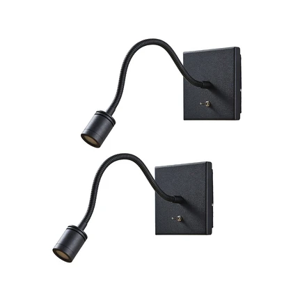 Ideal als Lesebeleuchtung neben Bett oder Couch: die LED-Wandleuchte Mayar mit beweglichem Leuchtenarm und Schalter im 2er-Set