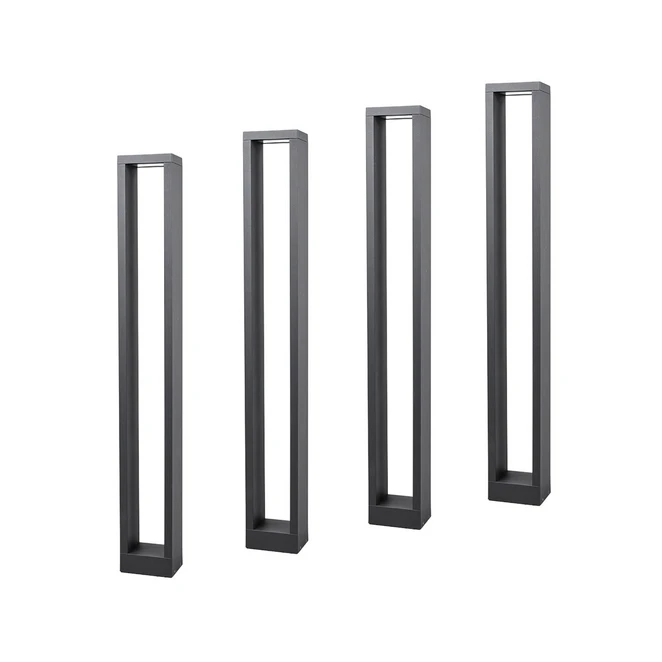 4er-Pack: LED-Pollerleuchte Jupp mit sanftem Lichtschein, grafitgrauer Oberfläche und eckiger Rahmenform