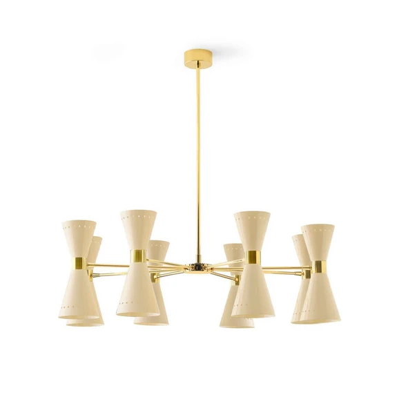 Die 16-flammige Pendellampe Megafono von Stilnovo vereint das zeitlose Design der 1950er-Jahre mit moderner Funktionalität und wird so zum Blickfang in jedem Wohn- und Esszimmer. Gefertigt aus hochwertigem Metall, besticht sie durch ihre klare Formensprache und die acht individuell verstellbaren Schirme, die gedreht und geschwenkt werden können, um das Licht gezielt zu lenken.