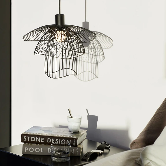 Die Pendelleuchte Papillon wurde von der französischen Designerin Elise Fouin entworfen. Fouin ist bekannt für ihren Fokus auf recycelte Materialien und ihren spielerischen Umgang mit Materialien. Das zeigt sich auch bei der Pendelleuchte Papillon, die aus Metall gefertigt ist, aber dennoch weiche und zarte Formen aufweist, die der Leuchte einen unverwechselbaren organischen Touch verleihen.