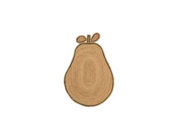 Pear Braided Jute Rug Natural ist ein schöner und kreativer Teppich mit einem Design, das gleichzeitig organisch und grafisch ist. Der Teppich wird von Hand aus natürlicher, ungefärbter Jute geflochten, was der Inneneinrichtung einen spielerischen und taktilen Ausdruck verleiht. Die rund geflochtene Struktur erzeugt ein natürliches Oberflächenmuster, das die Birnenform unterstreicht und den Teppich zu einer charmanten und attraktiven Ergänzung des Raums macht. Die kontrastierende Farbe, die entlang der Kante verläuft, wirkt wie eine Kontur, die die Glühbirne schön einrahmt und das Design aufwertet.