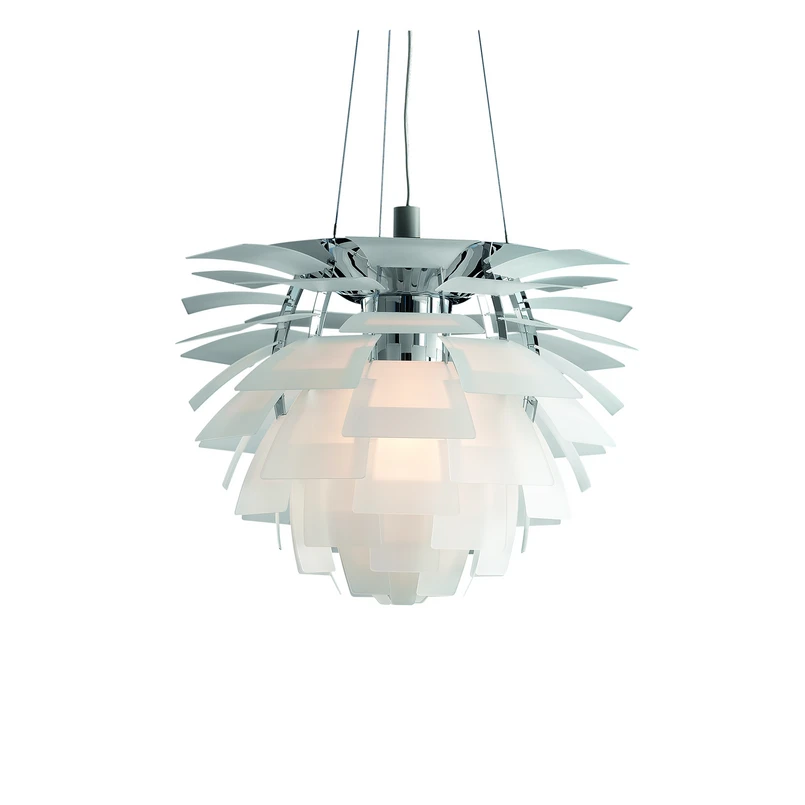 PH Artichoke wurde 1958 von Poul Henningsen entworfen. Er wurde beauftragt, eine Pendellampe für die Langelinie Pavillonen in Kopenhagen zu entwerfen, die völlig blendfrei sein sollte. Seine geniale Lösung bestand darin, 72 Blätter auf 12 Reihen zu verteilen und so eine Lampe zu schaffen, die in jedem Winkel blendfrei ist. Die Pendellampe gilt heute als Design-Ikone. Sie ist auf der ganzen Welt berühmt und hängt noch immer im Pavillionen in Kopenhagen. PH Artichoke ist auch unter dem Namen Koglen" (der Kegel") bekannt, benannt nach ihrem markanten Ausdruck.