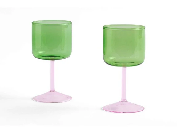 Das Tint Weinglas 2er-Set Grün/Pink hebt die Tischkultur mit seinem einzigartigen Design, das sich von herkömmlichen Trinkgläsern abhebt, in neue ästhetische Dimensionen. Die schöne Serie besteht sowohl aus Wein- als auch aus Biergläsern, die alle aus Borosilikatglas hergestellt sind, einer speziellen Glasart, die sehr leicht ist und Hitze und plötzlichen Temperaturschwankungen standhält, ohne zu zerbrechen. Das Glas hat eine leicht getönte Farbe und ist in verschiedenen schönen Schirmen erhältlich. Da sich die Gläser der Tint-Serie in der Farbe unterscheiden, aber in Material und Design übereinstimmen, können Sie die verschiedenen Tint-Gläser miteinander kombinieren, um einen schönen Zusammenhalt in Ihrer Auswahl an Trinkgläsern zu schaffen.