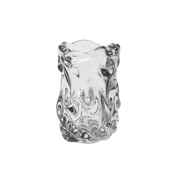 Die Virelle Vase ist aus mundgeblasenem Glas gefertigt und hat eine Form, die sanfte Bewegungen zum Ausdruck bringt. Die gewellte Gestaltung erinnert an Wogen und Schwingungen und verleiht dem Wohnraum eine fließende, skulpturale Charakteristik. Das Design ist wohlüberlegt und sorgt im jeweiligen Bereich für ein Gefühl von Bewegung.